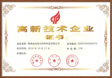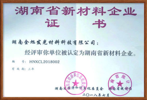 湖南金旭發(fā)光材料科技有限公司于 2016年成立,注冊資金1000萬元,是一家專業(yè)從事蓄能自發(fā)光反光材料的研發(fā)、生產與銷售的高新技術企業(yè),于2018年獲得省工信廳認定的省級新材料企業(yè)。
